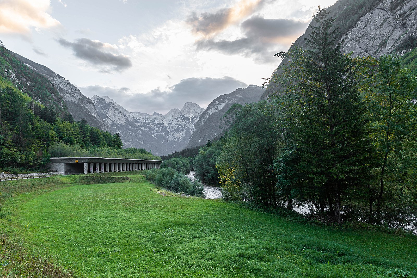 Soca und Berge 6 Uhr am Morgen